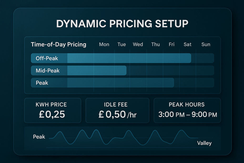 Customizable Tariffs: Choose between per-minute or per-kWh pricing to suit your station’s needs.