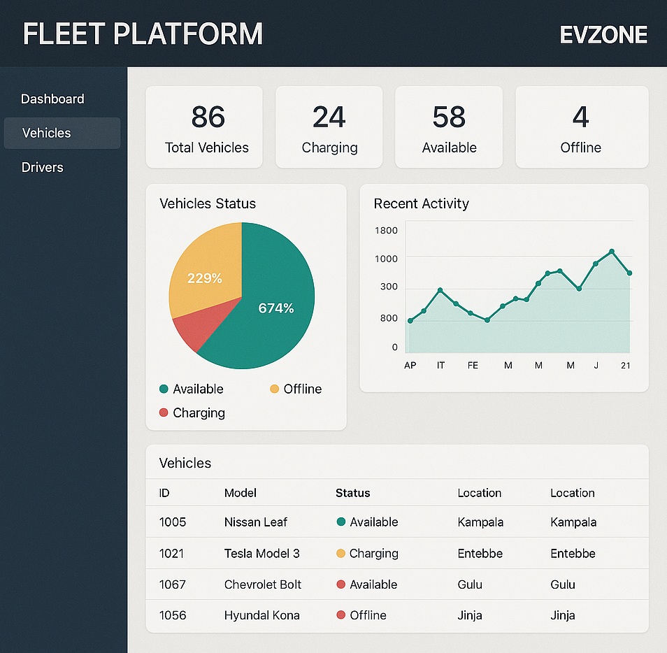 The EVzone Fleet Platform is designed to meet the unique needs of EV fleets, offering tools for tracking, scheduling and managing fleet charging operations. Whether for corporate, delivery, or ride-hailing fleets, this platform ensures smooth operations, cost efficiency and vehicle readiness.